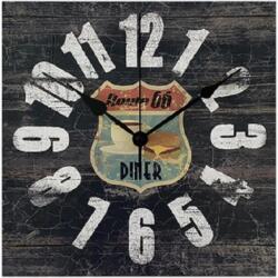 - Falióra fából ROUTE 66 - Méret:30x30 cm - Mozgás: seprűs ( csendes működés ) - 1 db AA elemmel működtethető - Az elemet a csomagolás nem tartalmazza