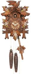 Hubert Herr 302/1E Schwarzwaldi kakukkos óra. Eredeti fekete erdei kakukkos óra, a faragványok az órán a Fekete-erdő klasszikusai.  Megmutatják a Fekete-erdő fafaragó mesterei,  művészi képességek magas színvonalát. A bonyolult faragványokat még ma is kézzel készítik a Fekete-erdőben, a régi hagyomány szerint.  A hársfa anyagot elsősorban itt használják, amelyet általában sötétbarnára festenek. A díszítő levelek, amelyek az óra elején vannak, a hagyományosan faragott kakukkos órákra jellemzőek.  A levelek kerete gyakran faragott madár, amely csúcsán helyezkedik el.   Mechanikus kézi felhúzás Éjszakai kikapcsolás Magassága 29 cm